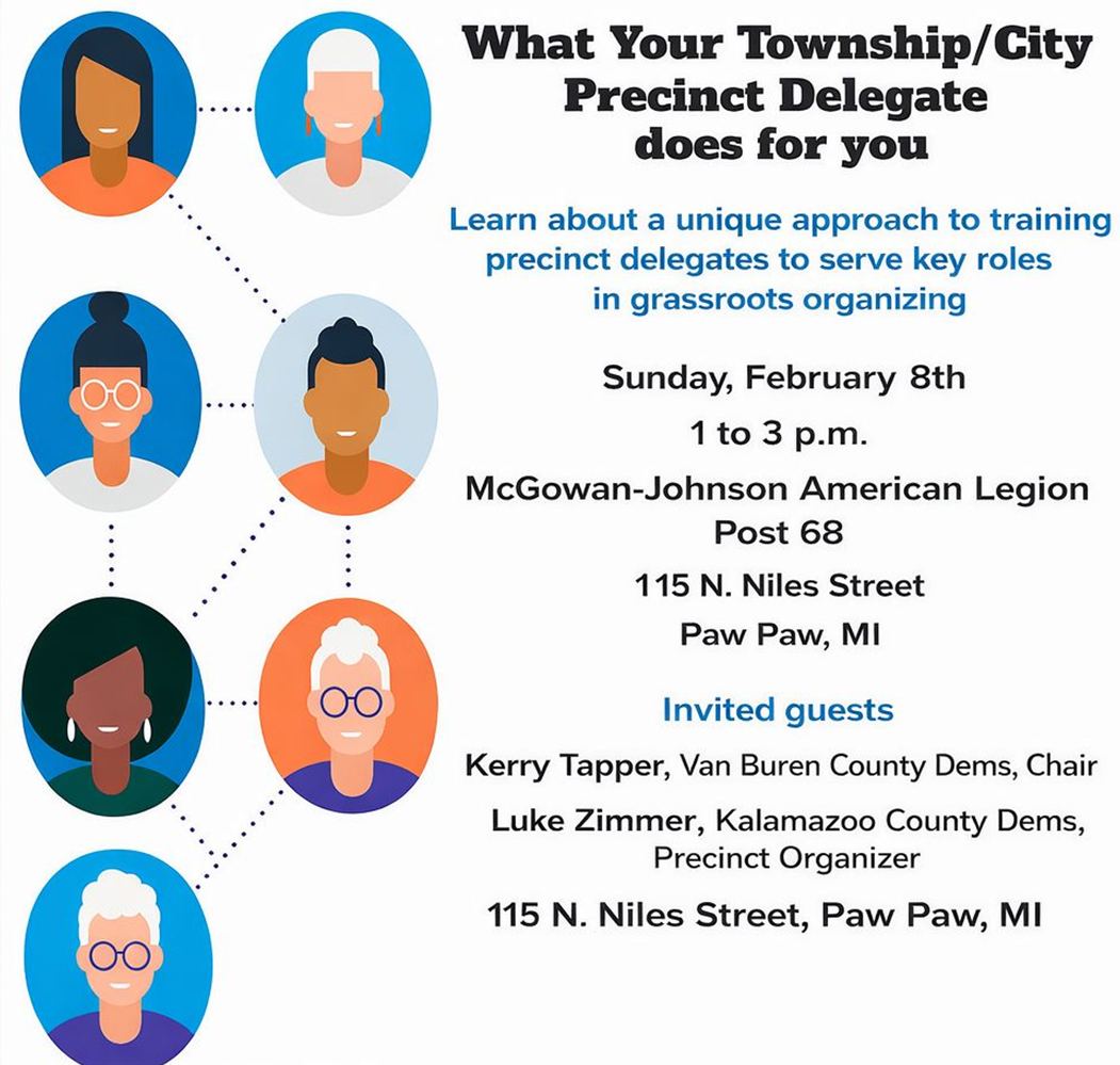 The Van Buren Dems are hosting a DEMonstrating commUNITY Drive for Dish Soap, benefiting Gobles-Kendall Area Ministry. Your donation helps local families through the Gobles-Kendall Area Ministry in Gobles. Everyday items make a real difference for our neighbors. Drop-Off Locations: Gobles-Kendall Area Ministry 210 E. Exchange Street, Gobles (269) 501-0224 Look-Sharp Imaging 37174 Red Arrow Hwy, Paw Paw Monday–Friday, 9:00 am – 5:00 pm VBCDP Event Coordinator’s Office 202 N. LaGrave Street, Paw Paw Donations accepted anytime Special Collection: VBCDP February Meeting VBISD Conference Center 490 S. Paw Paw Street, Lawrence Thursday, February 5 | 5:00–8:00 pm Questions or Nearby...